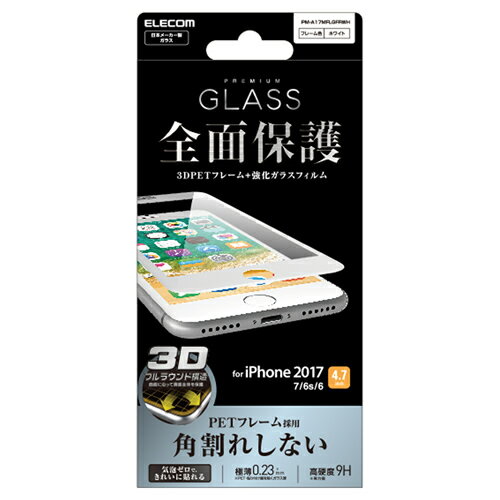 エレコム iPhone8 用 4.7インチ 3Dラウンドフレーム フルカバーガラス 液晶保護 フィルム フレーム付 ホワイト 0.23mm PM-A17MFLGFRWH