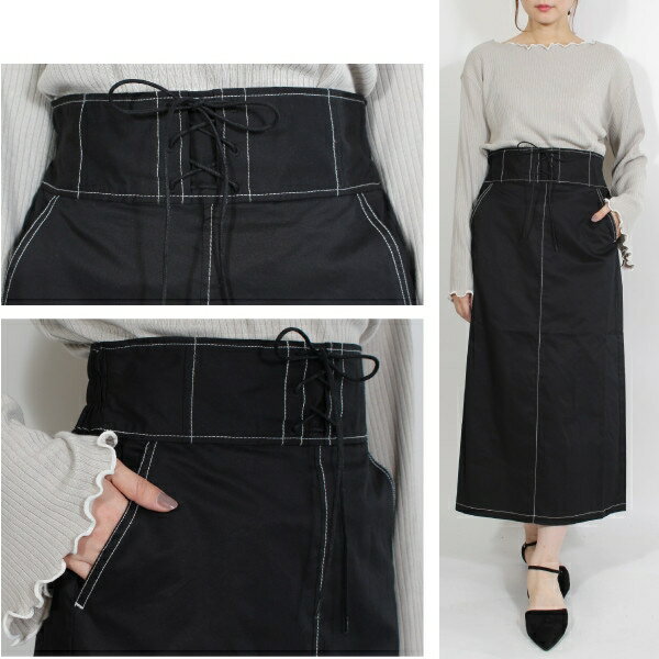 綿ツイルレースアップステッチタイトスカート(28033) [キャンセル・変更・返品不可]
